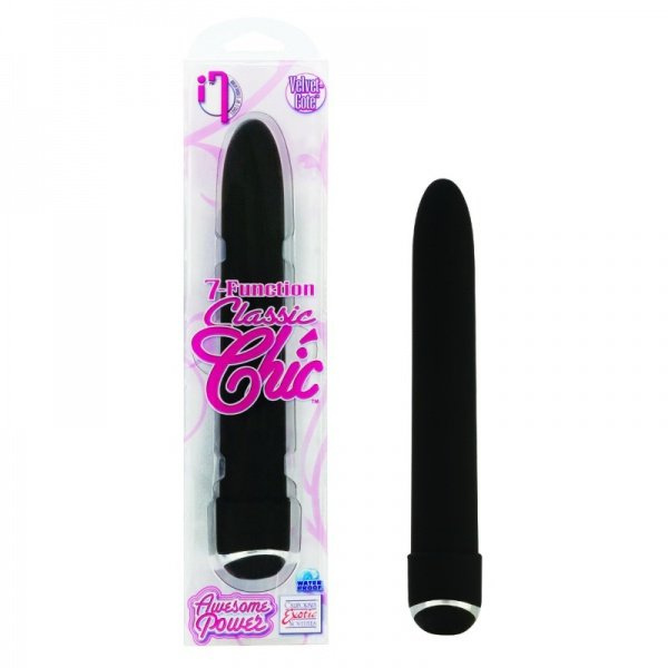 Plastový vibrátor 7 - Function Classic Chic ® je ideální volbou pro ženy, které mají rády výkon a design. Je to krásný dárek, či jako začátečnický anální vibrátor. Skvěle poslouží i jako dráždítko klitorisu. Díky tvrdému plastu, ze kterého je vyroben, perfektně přenáší vibrace a jeho dotyk je velmi intenzivní. Zároveň mu povrchová úprava Velvet - Cote™ propůjčuje jemný a hebký povrch. Vibrátor maximálně splňuje požadavky California Exotic Novelties na kvalitu a zároveň výkon. Tvůrci ho vybavili sedmi funkcemi. Zvládá vibrace, pulsace i oscilace. Na spodní straně vibrátoru je přepínací tlačítko, kterým můžete pohodlně funkce měnit. Intenzita vibrací je až překvapivá, vůči subtilnímu tělu vibrátoru.